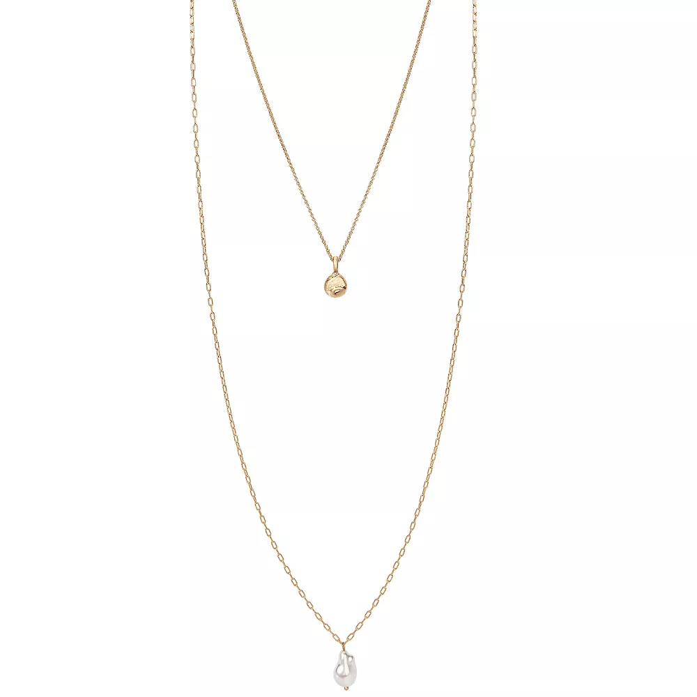 Be bold with this Sonoma Goods For Life® 2 Row Hammered Disc & Pearl Pendant Necklace.